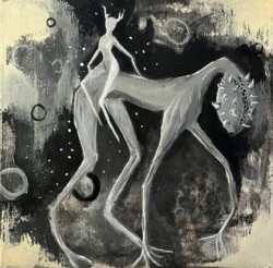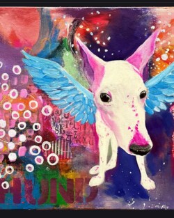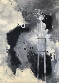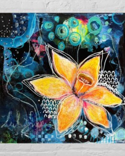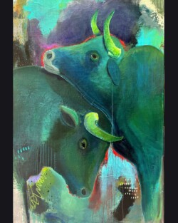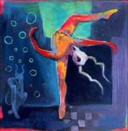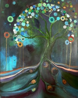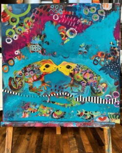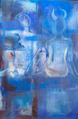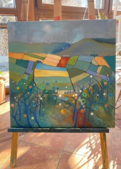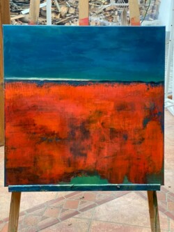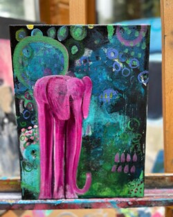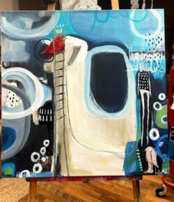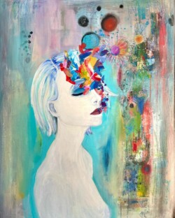 Bereit, Farbe auf die Leinwand zu bringen war ich aber erst vor einigen Jahren. Meine Bilder entstehen intuitiv. Manchmal gibt es ein fixes Bild in meinem Kopf, manchmal lasse ich einfach die Farben fließen und folge dem Malprozess. Ohne viel nachzudenken.